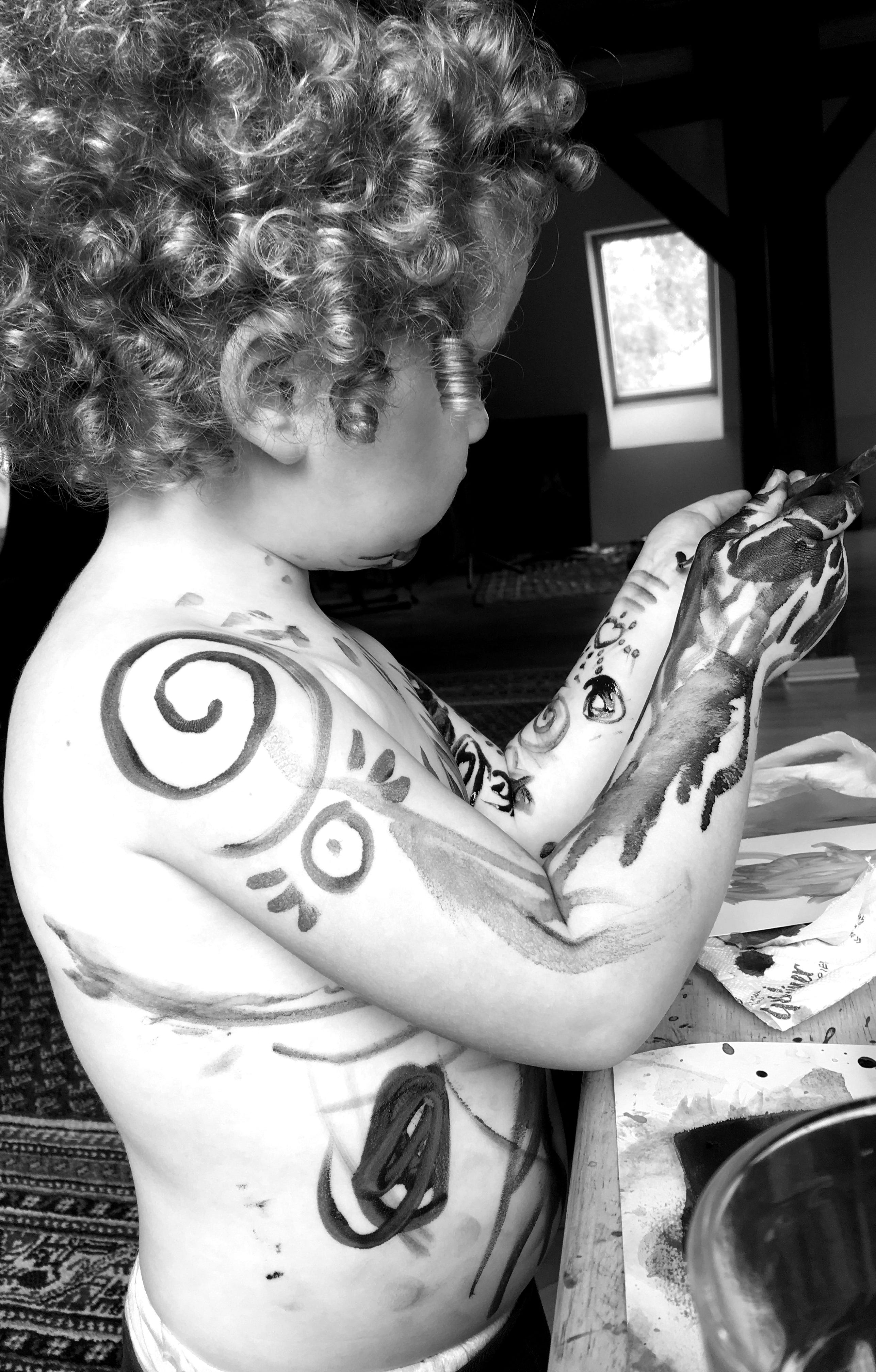 (a picture of my youngest when she was little and discovered the thrill of painting herself)